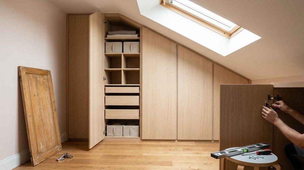 Les placards intégrés constituent le dernier poste de menuiserie intérieure à évaluer. Vieillissants, leurs charnières grippées ou leurs façades déformées nuisent à l'ergonomie d'une pièce. Or, bien conçus, ces équipements sur mesure permettent d'exploiter des volumes difficiles (sous les combles, sous un escalier, dans une chambre mansardée) qu'aucun meuble standard ne peut occuper.